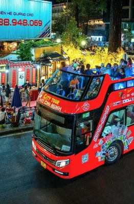 Tour đêm "Không ngủ ở Sài Gòn" trên xe buýt 2 tầng mui trần vừa được ra mắt từ đêm 21/12 khiến nhiều du khách thích thú. Đi Xe buýt mui trần chạy xuyên đêm đầu tiên trên thế giới ở TP.HCM