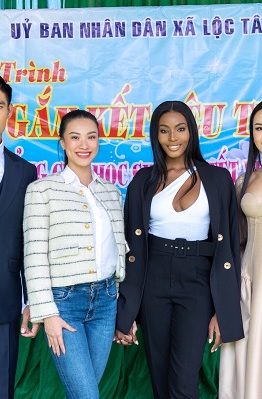 Sau khi tham dự sự kiện trao giải gương mặt nổi bật trong năm của một tạp chí thời trang tại Thành phố Hồ Chí Minh, Hoa hậu Siêu quốc gia Lalela Mswane, Hoa hậu ... Sao Hoa hậu Siêu quốc gia Lalela Mswane, Hoa hậu Trái đất Angela Ong làm thiện nguyện tại Việt Nam