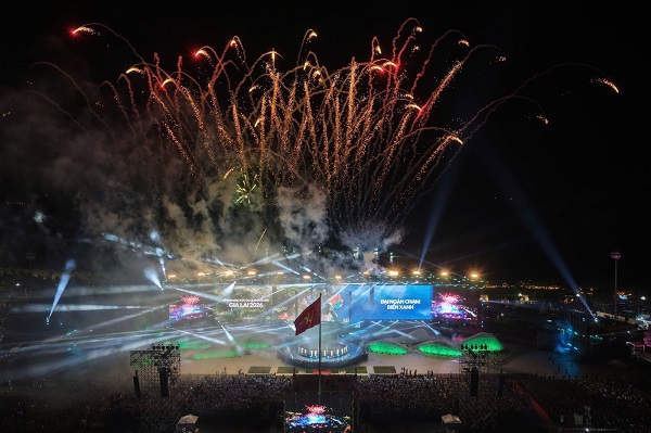 Lễ khai mạc Năm Du lịch Quốc gia 2026 tại Gia Lai chính thức diễn ra, mang đến một đêm nghệ thuật quy mô lớn với nhiều cảm xúc và bất ngờ. Không chỉ là sự kiện mở màn cho chuỗi hoạt động du lịch trong năm, chương trình còn thực sự trở thành một đại nhạc hội thực cảnh, nơi văn hóa truyền thống và tinh thần giải trí hiện đại hòa quyện rõ nét trên cùng một sân khấu. Lễ khai mạc Năm Du Lịch Quốc gia Gia Lai 2026 có sự tham gia của Đại biểu lãnh đạo Đảng, Nhà nước, Đại biểu các cơ quan đại diện nước ngoài tại Việt Nam và các tổ chức quốc tế, lãnh đạo Sở Văn hóa, Thể thao và Du lịch, Sở Văn hóa và Thể thao, Sở Du lịch, Hiệp hội Du lịch các tỉnh, thành phố, lãnh đạo và nguyên lãnh đạo tỉnh; lãnh đạo các sở, ban, ngành, hội, đoàn thể của tỉnh; lãnh đạo các xã, phường; các doanh nghiệp, nhà đầu tư, các đối tác, nhà tài trợ trong và ngoài tỉnh. Ông Nguyễn Văn Hùng – Ủy viên Ban Chấp hành Trung ương Đảng khóa XIII, Bộ trưởng Bộ Văn hóa, Thể thao và Du lịch, Trưởng Ban Chỉ đạo Năm Du lịch quốc gia – Gia Lai 2026 tuyên bố Khai mạc Năm du lịch Quốc gia Gia Lai 2026 Văn hóa truyền thống được kể lại bằng ngôn ngữ sân khấu hiện đại Ngay từ những phút đầu tiên, sân khấu đã gây ấn tượng mạnh với thiết kế đa tầng kết hợp màn hình LED, hiệu ứng ánh sáng và không gian trình diễn mở rộng theo chiều sâu. Thay vì một sân khấu biểu diễn đơn tuyến, toàn bộ khu vực được dàn dựng như một bức tranh chuyển động liên tục – nơi mỗi chương nghệ thuật mở ra một lớp cảm xúc mới, dẫn dắt khán giả đi qua hành trình kết nối từ đại ngàn đến biển xanh. Phần thực cảnh mở màn của đêm khai mạc được triển khai qua bốn chương nghệ thuật, tạo nên hành trình cảm xúc xuyên suốt từ cội nguồn đến tương lai. Khởi nguyên mở ra bằng hình ảnh ánh sáng đầu tiên của sự sống, khởi đầu cho hành trình nghệ thuật bắt nguồn từ thiên nhiên. Linh khí đại ngàn tái hiện không gian cồng chiêng thiêng liêng, khắc họa linh hồn văn hóa Tây Nguyên cùng sức sống bền bỉ của cộng đồng. Tiếp nối là Hào khí Tây Sơn, chương diễn mang tinh thần sử thi, tôn vinh truyền thống anh hùng và ý chí kiên cường của vùng đất võ. Khép lại phần thực cảnh, Đại ngàn chạm biển xanh trở thành biểu tượng cho sự giao thoa giữa núi rừng và đại dương, mở ra khát vọng kết nối và phát triển trong tương lai. Thông qua ngôn ngữ sân khấu hiện đại, các chất liệu văn hóa Tây Nguyên – từ không gian cồng chiêng, vũ điệu dân gian, âm nhạc truyền thống như hát bội đến cảm hứng thi ca của vùng đất võ trời văn được tái hiện theo cách tiếp cận mới mẻ, vừa gìn giữ chiều sâu bản sắc vừa tạo sự gần gũi với khán giả đương đại. Tái hiện lễ hội cầu ngư tại Lễ khai mạc Năm du lịch Gia Lai 2026 Các chương diễn không tồn tại riêng lẻ mà liên kết mạch lạc, tạo nên dòng chảy cảm xúc liền mạch. Sự kết hợp giữa yếu tố truyền thống và tư duy dàn dựng hiện đại giúp khán giả đồng thời cảm nhận được chiều sâu lịch sử và nhịp chuyển mình của đời sống văn hóa hôm nay. Đại nhạc hội “Vũ trụ Say Hi” khuấy động sân khấu khai mạc Sau phần trình diễn mang màu sắc văn hóa – nghệ thuật, sân khấu khai mạc bất ngờ chuyển mình thành một Mega Concert thực thụ với đại nhạc hội “Vũ trụ “Say Hi”, đánh dấu lần đầu tiên các nghệ sĩ thuộc các mùa chương trình cùng hội tụ trên một sân khấu quy mô lớn. Sự xuất hiện đồng thời của dàn “anh trai” và “em xinh” đã nhanh chóng đẩy bầu không khí chương trình lên cao trào, mang đến nguồn năng lượng trẻ trung và hiện đại cho toàn bộ đêm diễn. Từ những tiết mục solo mang dấu ấn cá nhân đến các màn trình diễn tập thể quy mô lớn, Vũ trụ “Say Hi” đã góp phần đưa sân khấu khai mạc vượt khỏi khuôn khổ một chương trình nghi lễ, trở thành một không gian lễ hội đúng nghĩa – nơi âm nhạc, cảm xúc và sự tương tác với khán giả cùng bùng nổ. Minh Nguyễn